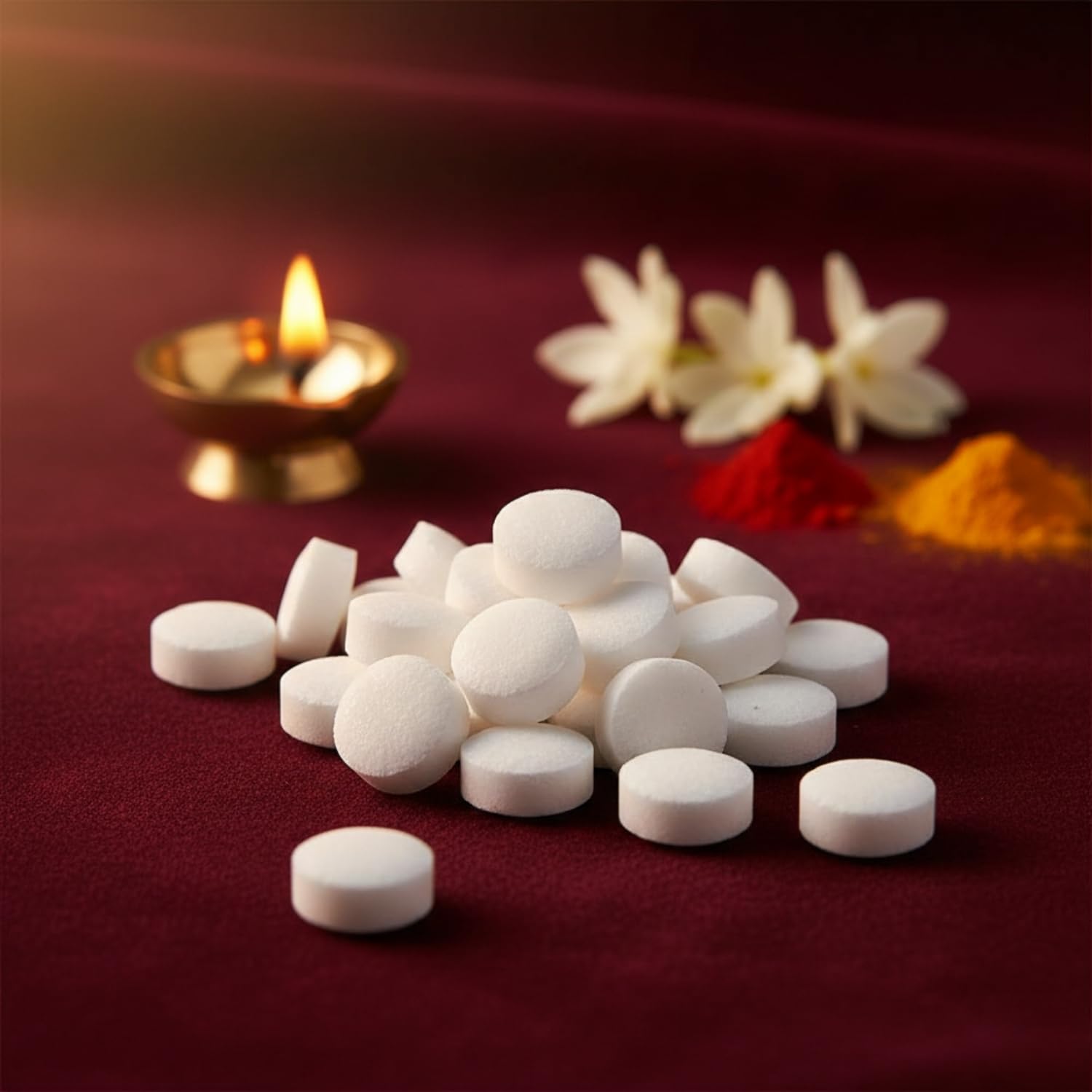 • Convenient Tablet Form: Precisely shaped for easy handling. Each tablet is uniform in size, ensuring a predictable burning time for your Aarti or Hawan.